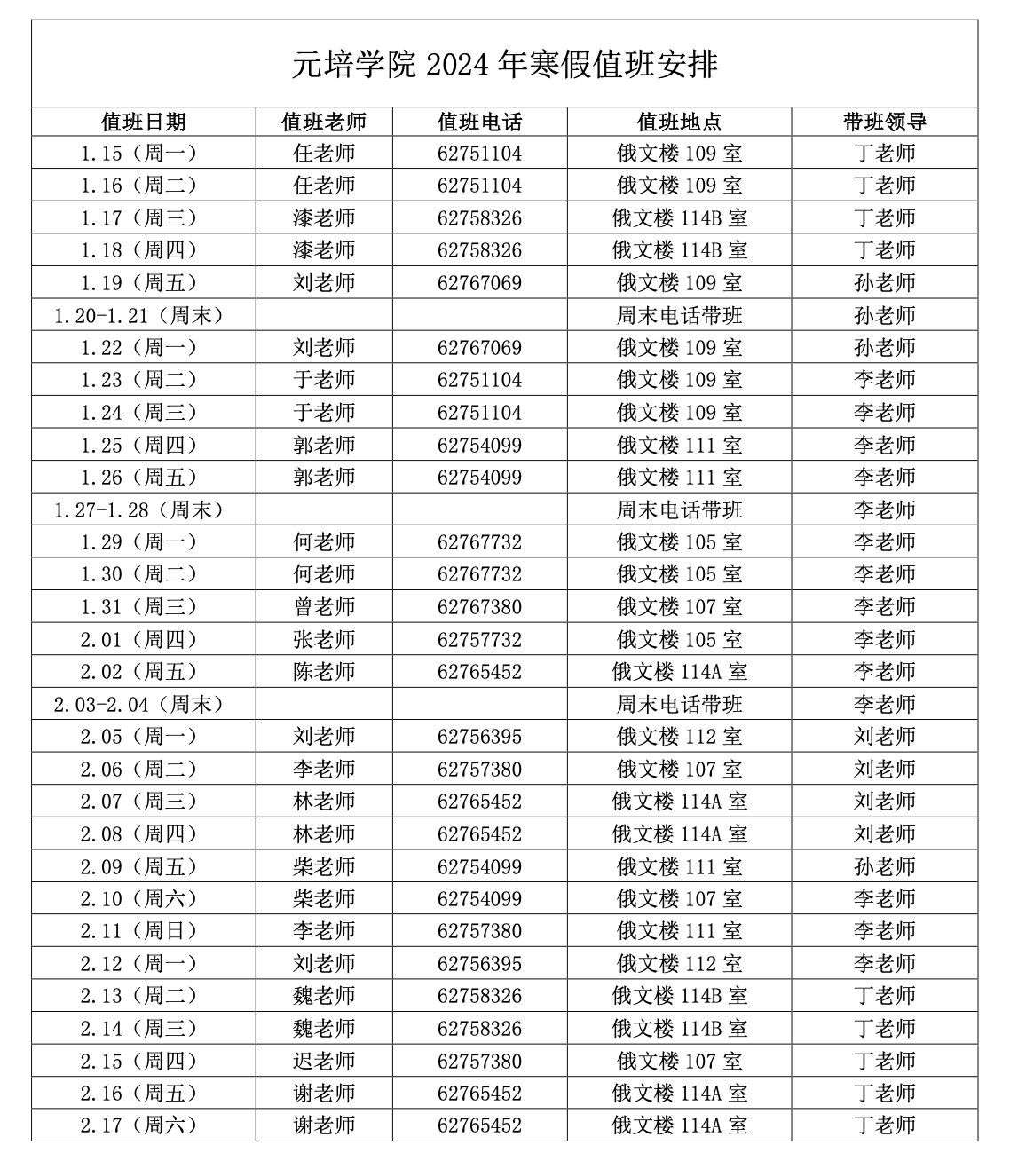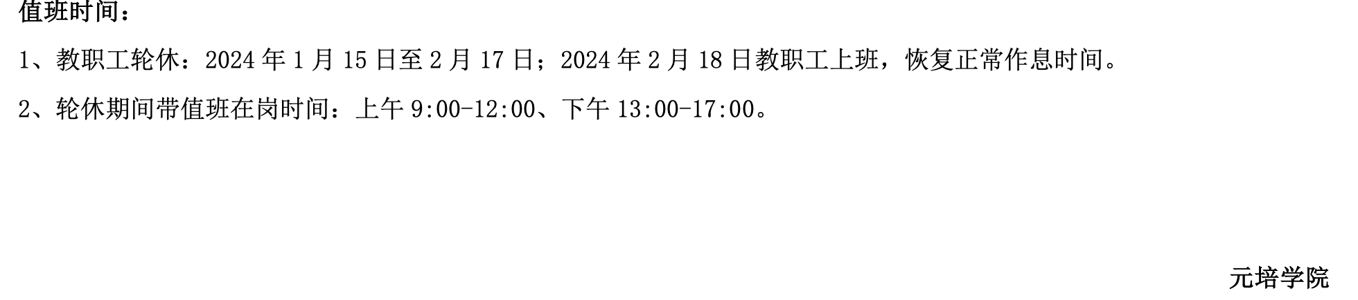 午夜直播app 2024年寒假值班安排